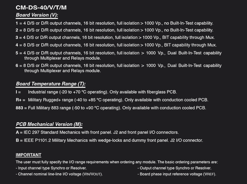 - Digital to Synchro-Resolver, 4 channel, 16 bit resolution, full galvanic isolation, no Built-In-Test